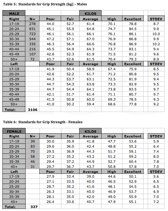Using the identical standards provided in Table 5 and Table 6 for both males and females, a more meaningful and valid classification of strength can be realized.
